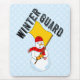 Winter Guard text with a snowman holding a flag and wearing a scarf with flags is a humourous guard design for colorguard and winter guard members at birthdays and holidays