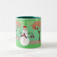 Snowman with a Candycane Tree Two-Tone Coffee Mug