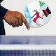 A fun winter design featuring a whimsical snowman walking with a cane on snowy background.