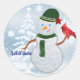 snowman with cardinal Classic Round Sticker to seal all your holiday gifts and envelopes , you will get this on a post -it note too!