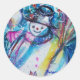 SNOWMAN WITH OWL IN WINTER NIGHT CLASSIC ROUND STICKER
