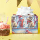 A cheerful snowman and an adorable puppy, both wearing warm winter attire, share a snowy moment under a pastel-coloured sky