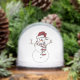 Globe features a hand drawn original design of a snowman wearing a festive Santa hat.
