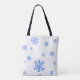 A two sided rugged tote with a Snowman on one side and falling snowflakes on the other. It's a lovely two sided, rugged bag great for gift giving and can also be used as the reusable gift bag to tote some gifts to your friends.