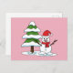An illustration of an adorable snowman with a cute red bonnet and a snowy pine tree. Snowfall during winter is one of the best experience that this season can give, not to mention that kids and adults can make their own snowman and have fun throwing snowballs. What are your happy memories with the snow?