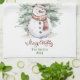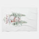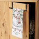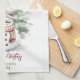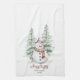 Snowman with Pine Trees Personalised Kitchen Towel; Merry Christmas; Family name and year.