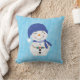 On one side of the pillow, a snowman is savouring a cup of hot cocoa, surrounded by whimsical winter delights. The other side of the pillow features a heartwarming snowman juggling snowballs, one entangled in glowing lights, another standing cutely snuggled in warm winter gear, and two snowmen snuggled together reading a story.