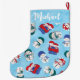 The colour palette, showcasing bright red, cobalt blue, dark teal green, white, and frosty blue, infuses a festive charm into your holiday decor. With its adorable, sweet, fun, and festive design, this "Snowman's Winter Wonderland" Christmas Stocking is the ideal way to add warmth and joy to your holiday celebrations.