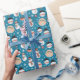 The calming blue backdrop reflects the crispness of winter skies, creating a sense of serenity and joy. The super cute snowmen, donned in cheerful scarves and hats, mingle with vibrant Christmas ornaments, adding a touch of festive sophistication to the design. Imagine your gifts wrapped in this heartwarming pattern, nestled under the soft glow of holiday lights, creating a scene of modern luxury and timeless holiday magic.