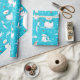 Scattered snowpiles and delicate snowflakes complete the wintry scene, adding texture and charm to the wrapping paper. The subtle white and blue accents evoke the peaceful beauty of freshly fallen snow, creating a cohesive and festive look.
