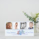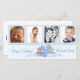 This holiday photo card features snowman family on blue snowflake background and 4 spots for your photos. Easy to insert your own photo and choice of greeting.