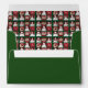 Cute snowmen in hats and scarves, interspersed with white flowers and branches on a green background, creates a fun collage that's perfect on this holiday envelope.