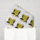 Holiday tissue paper with a white background, tiled design of snowmen in tall stovepipe hats and a heart that reads Snowmen Melt My Heart!