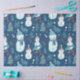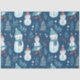 Add a touch of holiday cheer to your gift wrapping with this delightful Christmas-themed tissue paper. The design features an enchanting blue background, creating a perfect wintry canvas for a charming pattern of adorable snowmen, delicate falling snow, festive greenery, and Christmas trees. It's a whimsical way to bring the magic of the season to your presents.