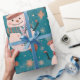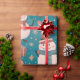 The cheerful combination of green, white, red, gold, and blue hues adds to the festive spirit of this wrapping paper. The green background symbolises the freshness of pine trees, while the white and blue elements evoke the serene beauty of snow-covered landscapes. The pops of red and gold reflect the warmth and sparkle of holiday decorations, creating a visually appealing and captivating design.