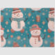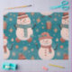Add a festive and whimsical touch to your holiday wrapping with this delightful Christmas-themed tissue paper. The vibrant green background sets a cheerful and seasonal tone, perfectly highlighting the charming pattern of snowmen, gifts, and stars in shades of green, brown, gold, and white.