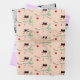 Unconventional Christmas colours wrapping paper sheets with snowmen and trees designs. Each large sheet contains a different design and colour. My own snowman artwork covers two of the sheets, in peach and bright pink. The little invisible snowman is wearing a black hat and scarf, and he is holding a red heart on a string. The other snowman pattern has him standing in a snowdrift wearing a blue scarf and waving his stick arms. The third sheet of paper contains black trees with swirling limbs printed over a silver grey background colour. These large sheets of paper come rolled, and will not have creases. Fun wrapping paper designs that work for all members of the family.