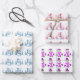 Gift wrap for the lovers of snowmen. Featured here you'll find a soft monochromatic pink snowman themed paper, monochromatic blue snowman scene and a jolly little snowman wearing purple accessories ready for the winter season of fun. A joyful bundle of holiday papers.