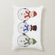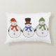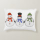 Three cute snowmen wearing scarves and each with a special decorated outfit. A Santa hat, a beanie and a top hat.