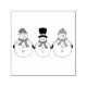 Three cute snowmen wearing scarves and each with a special decorated outfit. A Santa hat, a beanie and a top hat.