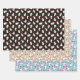 Festive snowmen scattered on black, tan and blue backgrounds.
