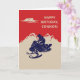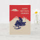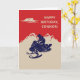 Create a personalised birthday card for your favourite snowmobiler or create the perfect card for any occasion since the text on the front and the inside of this card is ready for your custom touch. This greeting card has a vintage style illustration of a snowmobile and rider in navy blue set against a backdrop of cream or ivory coloured mountains against a red background.