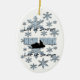 A graphic design of snowflakes and a snowmobile by artist/designer Charmaine Paulson on a Christmas Ornament. The ornament has the text "Let it Snow New York", and templates for your personalisation.
