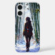 Anime-inspired phone case featuring a girl walking through a serene snow-covered bamboo forest. Perfect for tranquil winter scenery and pastel aesthetic lovers.