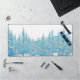 A stylised, blue monotone image of conifer trees covered in snow. Customise by adding your own text.