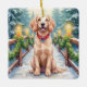 Snowy Bridge Boykin Spaniel Christmas Art Ceramic Ornament