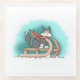 Snowy Cartoon Cat on Sled with Scarf Glass Coaster