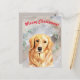 Snowy Christmas illustration with golden retriever Postcard