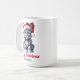 Cute snow leopard baby wearing Santa hat at snowy winter season Christmas coffee mug.