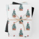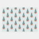 These three festive wrapping paper sheets feature a cute Christmas tree covered in snow with colorful presents at the bottom. The background colors (white, mint green, black) are customizable. Perfect for seasonal gift wrapping.