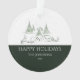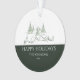 A minimalist holiday Snowy Christmas Village ornament with "Happy Holidays” in white on a Cardin green background. The name, greeting, and year can be easily customised for a personal touch.