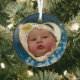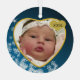 Snowy Dark Blue Baby's Birth Year Photo Christmas Glass Tree Decoration