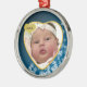 Snowy Dark Blue Baby's Birth Year Photo Christmas Metal Tree Decoration