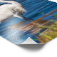 This digital painting is of a beautiful white Snowy Egret bird searching or lunch in the blue waters of the pond.