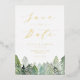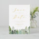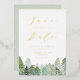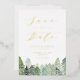 This customisable save the date card features a snowy evergreen forest and shimmering foil text on the front. Choose from gold, rose gold, or silver foil for a polished, eye-catching finish. The nature-inspired design makes it perfect for winter or rustic weddings. Personalise it with your names and wedding date to send a stylish announcement.