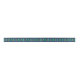 A modern geometric pattern of fir trees in teal, turquoise and golden yellow. The sky is navy with white falling snow.