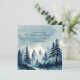 On the front of the card, a winter landscape is depicted, painted with soft watercolor brushstrokes in shades of blue and gray. A forest of snowflakes falling, with slender trees rising towards the winter sky. Elegant card to customize this winter season.