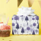 Purple Christmas wrapping paper roll featuring whimsical trees in a snowy Christmas themed forest.