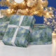 A watercolor painting of snow covered fir trees nestled grove with the northern lights in the background create a peaceful winter scene.