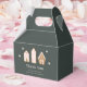 Whimsical Christmas theme baby shower favour box featuring illustration of gingerbread houses with pink accents.