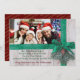 Snowy Green Ribbon and Bow on Wood Photo Holiday Card