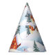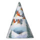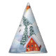Snowy hills, houses: watercolor landscape party hat