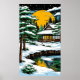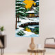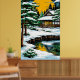 Snowy Japanese Cottage By Moonlit Sunset Poster