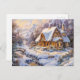 cosy farmhouse nestled in snowy mountains with a gentle stream, captured in a serene oil painting style.