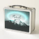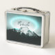 Snowy mountain mysterious blue neon light monogram metal lunch box