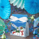 High on a mountain of snow you'll find these cute snowmen waiting to wish you a Merry Christmas. Mountain landscape photography.